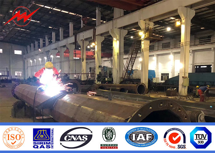 onze staalpool is kromming aan vorm aan de veelhoekige (kegel) sectie ten eerste. Dan wordt het gelast door de automatische machine van het onder:dompelen-booglassen. Ten derde zullen hoogste GLB, de strook en de grondplaat aan de pool worden gelast. En definitief zullen andere toebehoren (steunsteunen, laddersteun, enz.) aan de poolschacht worden gelast.