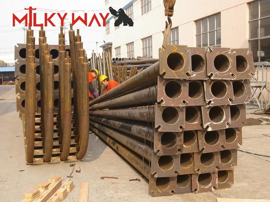 | Productieproces van hoge mast paal | Grondstof test → Snijden →Vormen of buigen →Lassen (longitudinaal) →Afmeting verifiëren →Flenslassen →Gaten boren →Kalibratie →Ontbramen→Verzinken of poedercoaten, schilderen →Herijking→Draad →Pakketten |